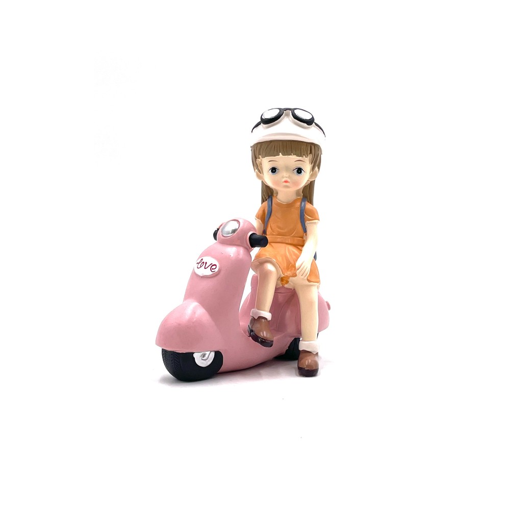 مجسم دراجة نارية وتمثال فتاة أو فتى حسب الاختيار إضافة متعة لجميع ديكورات منزلك، بسيط، جميل ومثير للاهتمام.