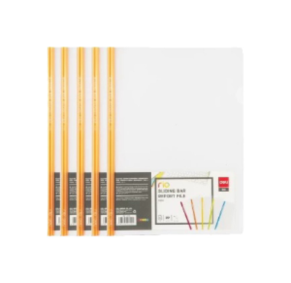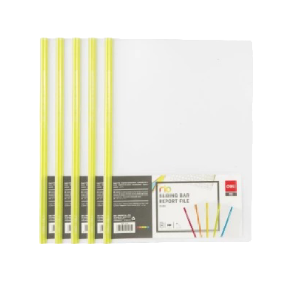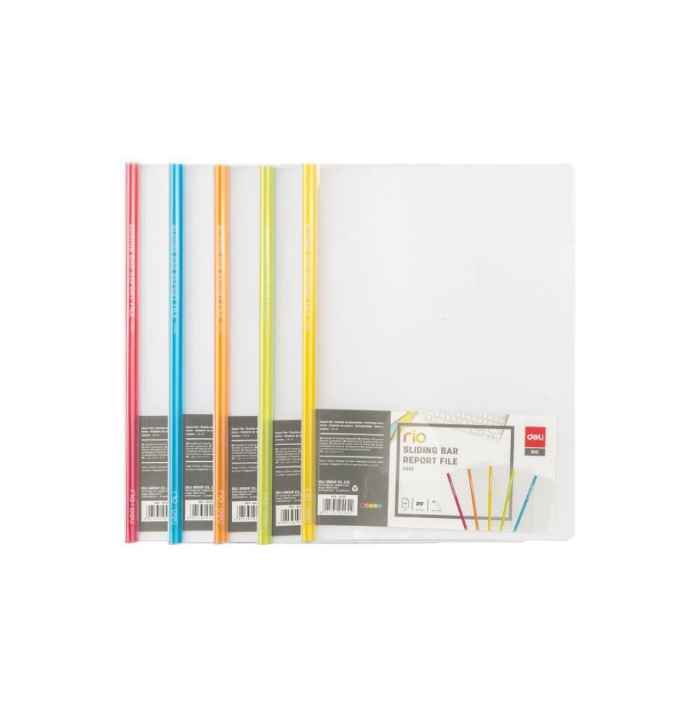 حافظ على أوراقك وتقاريرك منظمة مع ملف التقارير الشفاف من Deli Rio. يتميز بتصميم عملي مع شريط منزلق جانبي لتثبيت الأوراق بسهولة وسحبها بدون عناء. مصنوع من مادة PP المتينة التي تحافظ على الأوراق من التجعد والتمزق، مثالي للاستخدام في المدارس، الجامعات، والمكاتب.
