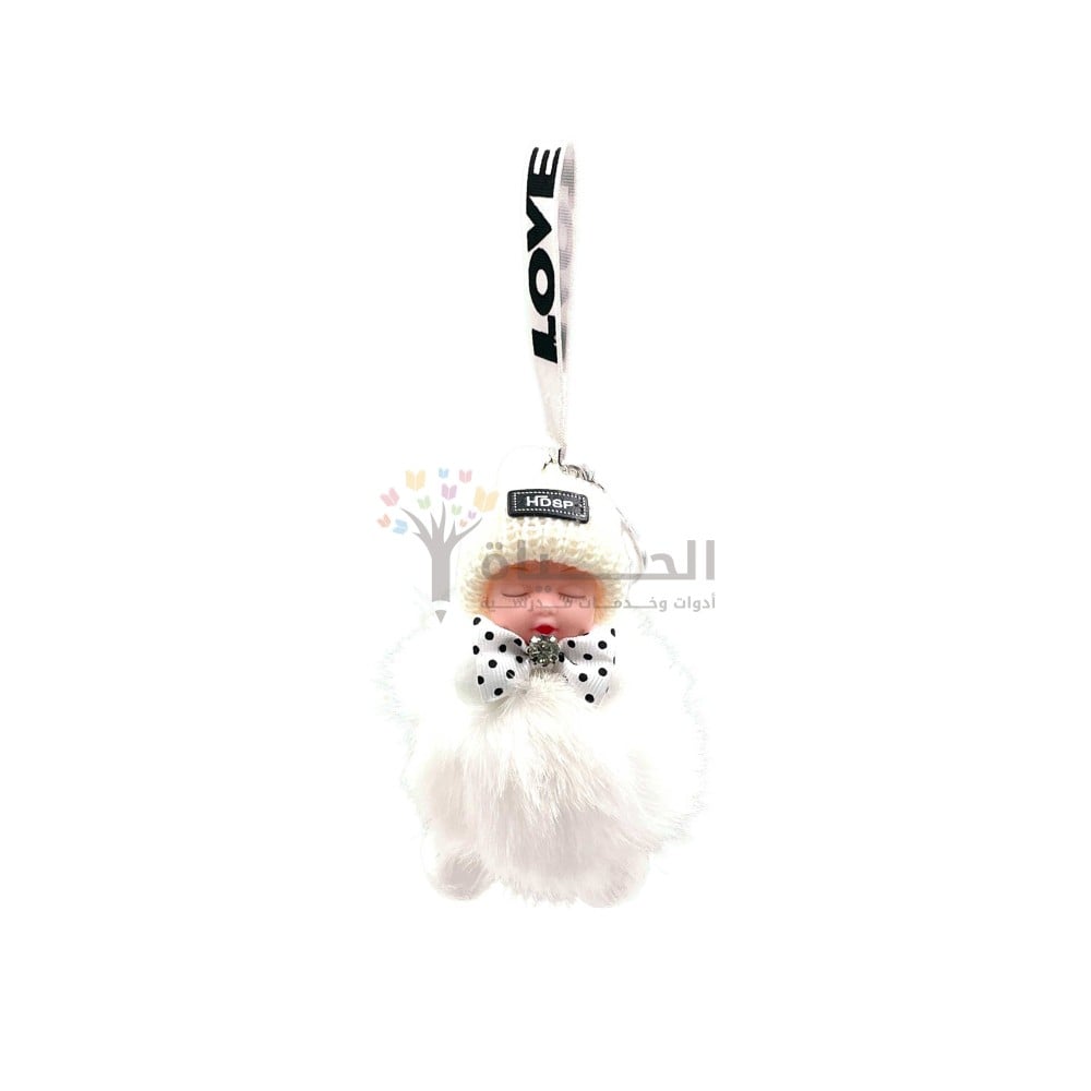 - النوع: ملحق ميدالية مفاتيح لتعليق المفاتيح على شكل دمية طفل نائم مع جسم كروي ناعم من القطيفة.