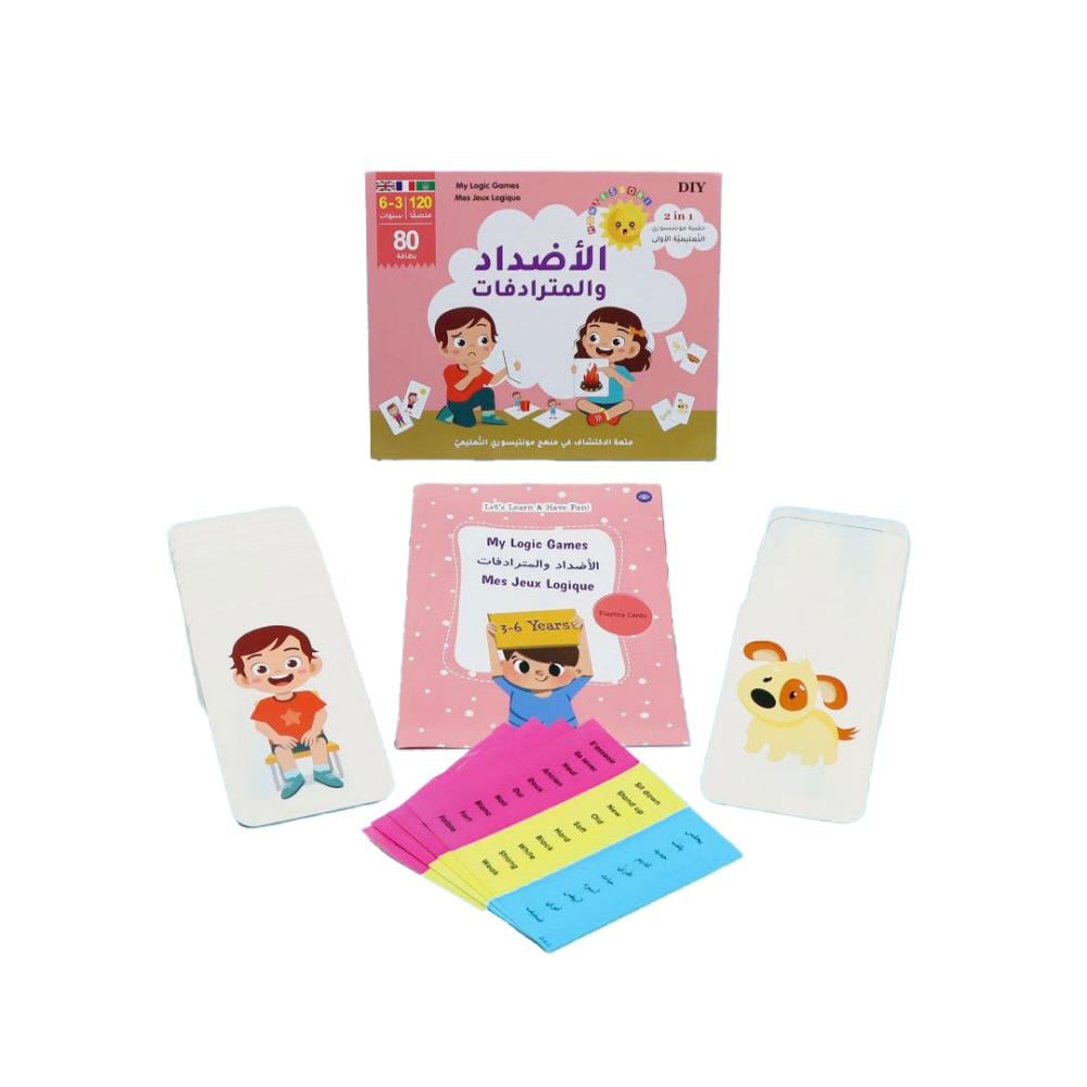 120 stickers containing the names of opposites in three languages (Arabic - English - French).