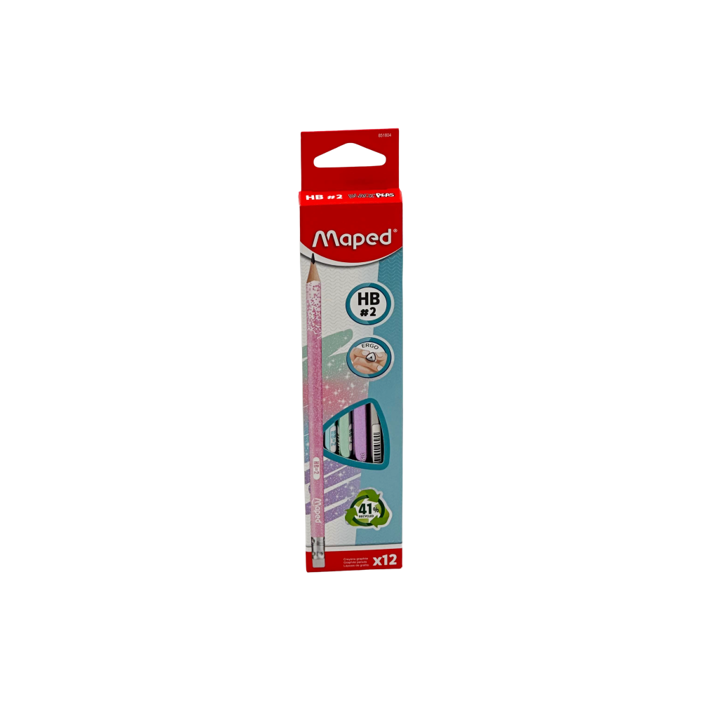 Enjoy comfortable writing and drawing with Maped HB #2 pencils , designed with high quality and suitable for everyday use at school or the office. These pencils feature a comfortable hexagonal shape that prevents slippage and a built-in eraser at the tip for easy correction. Ideal for students, teachers, and artists.